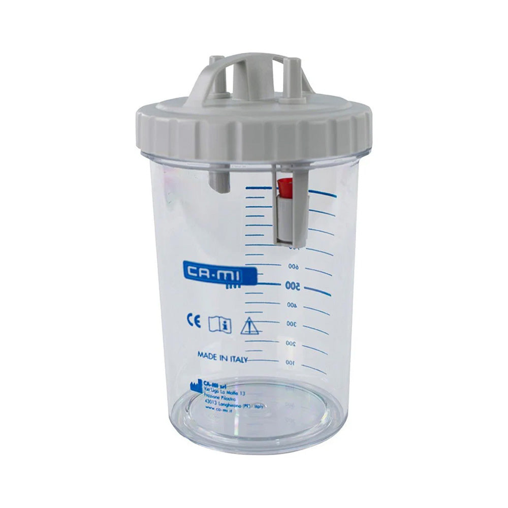 El Frasco de Aspirador de Secreciones con tapa de rosca y asa ergonómica para un agarre seguro. Incorpora junta de silicona para sellado hermético y sistema de válvula de desbordamiento integrado. Su diseño graduado permite una lectura precisa del volumen. Compatible con aspiradores quirúrgicos CAMI y sistemas de vacío centralizado, ideal para la recolección segura de fluidos corporales como saliva, flema o sangre.